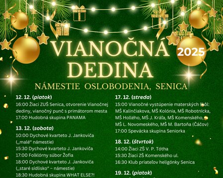 16:00 Žiaci ZUŠ Senica, otvorenie Vianočnej dediny, vianočný punč s primátorom mesta